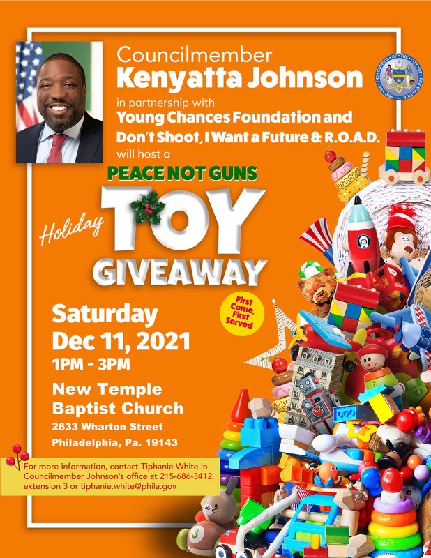Kenyatta Johnson On Twitter Join Me For The Peace Not Guns Toy Giveaway Today December 11 In South Philadelphia It Will Take Place At New Temple Baptist Church 2633 Wharton Street From